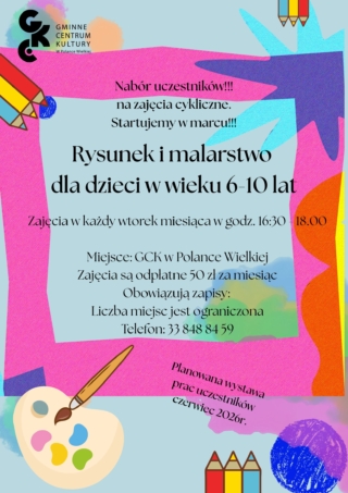 INFORMACJA!!! Ruszają zapisy na zajęcia z rysunku i malarstwa dla dzieci w wieku 6-10 lat!!! Zapraszamy do kontaktu!!!