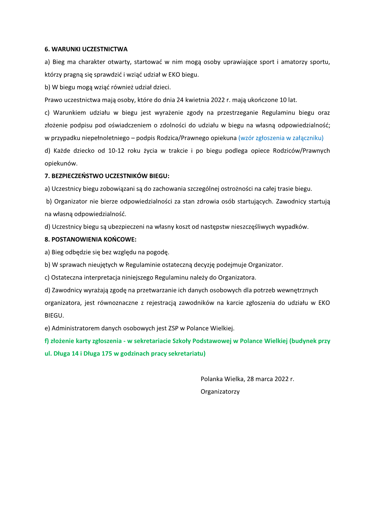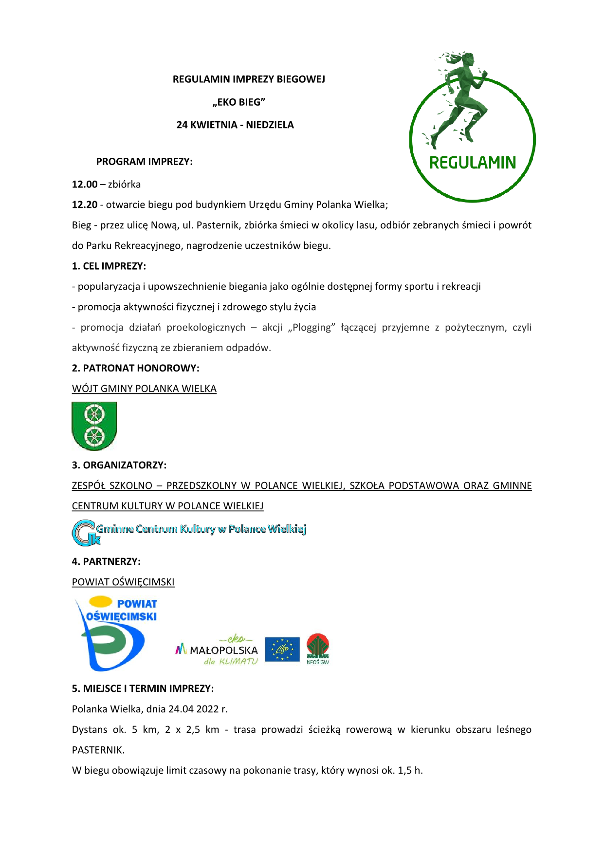 22 kwietnia niemal na całym świecie obchodzimy Światowy Dzień Ziemi. Z tej okazji ZSP Szkoła Podstawowa w Polance Wielkiej i Gminne Centrum Kultury zapraszają 24 kwietnia na festyn rodzinny w Parku Rekreacyjnym, który poprzedzi EKO-bieg połączony ze sprzątaniem w okolicy lasu Pasternik. Będzie to świetna okazja do integracji mieszkańców po tak długiej przerwie związanej z dystansem epidemiologicznym.