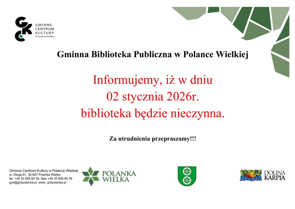Biblioteka e-mail: biblioteka@gckpolanka.pl