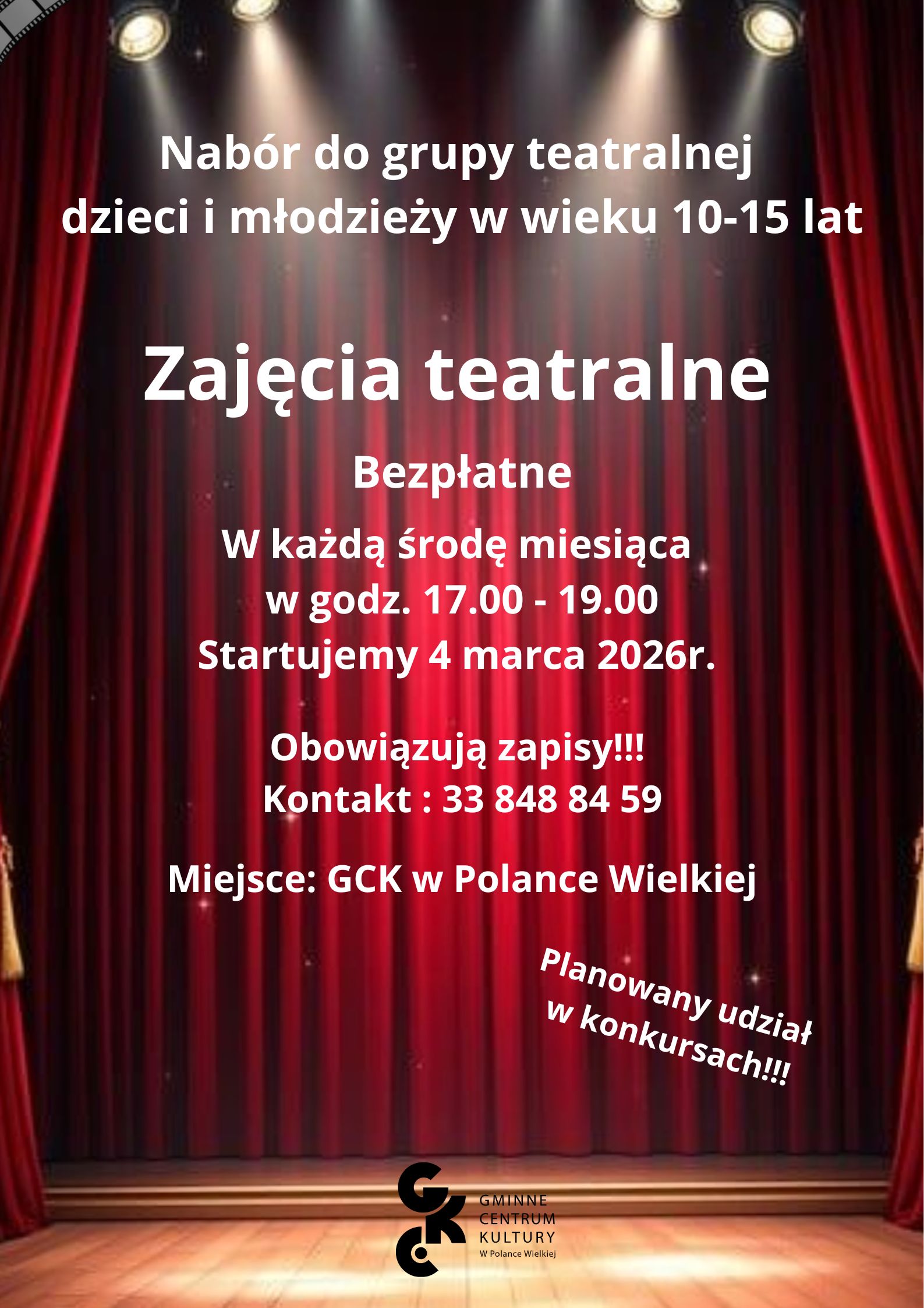 INFORMACJA!!! Ruszają zapisy na zajęcia teatralne dla dzieci i młodzieży w wieku 10-15 lat. Zapraszamy do kontaktu!