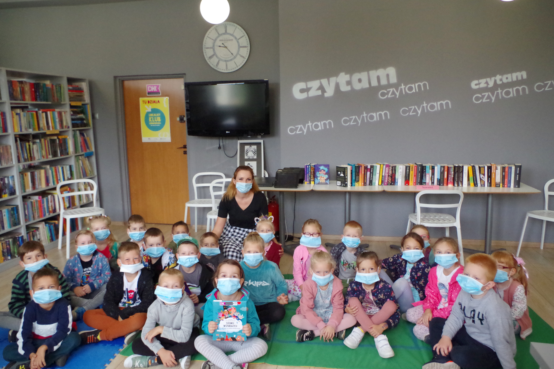 Pewnie znacie bajkę o trzech świnkach, które w budowanych przez siebie domkach chroniły się przed złym wilkiem. Ale czy czytaliście historię, w której to świnki nachodzą sympatycznego wilka, by nakłaniać go do kupna drewnianego, a potem murowanego domu oraz wielu „niezbędnych” rzeczy, jak wałek do masażu uszu czy śpiewająca szczoteczka? :) Taką właśnie opowieść poznała 16 września przedszkolna grupa należąca do Dyskusyjnego Klubu Książki dla dzieci, która wraz z wychowaczynią p. Małgorzatą Antecką-Żurek odwiedziła publiczną bibliotekę. W czasie spotkania dzieci wysłuchały bajkę „Trzy obrotne świnki” Roksany Jędrzejewskiej-Wróbel, a następnie rozmawiały z bibliotekarzem o zachowaniach jej bohaterów oraz o cechach, roli i wpływie reklamy.