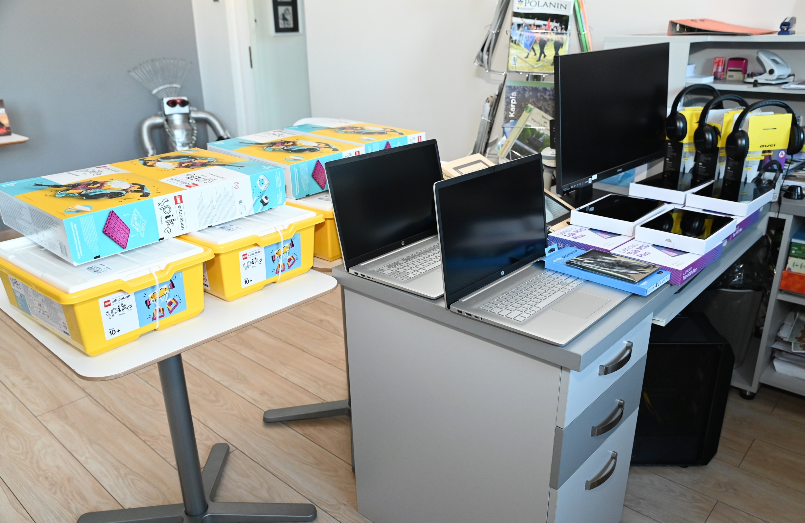W ramach zadania zakupiono: zestaw komputerowy, 2 laptopy, 4 zestawy do konstruowania robotów i nauki programowania dla dzieci, 3 czytniki e-booków, 4 tablety, 3 pary słuchawek do komputera oraz pakiet antywirusowy.