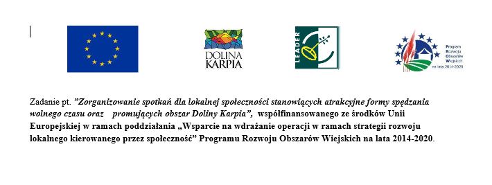 Impreza organizowana w ramach zadania grantowego, „Dolina Karpia zobaczenia jest warta” – organizacja spotkań dla lokalnej społeczności promujących dziedzictwo kulturowe Doliny Karpia w ramach Projektu grantowego pod nazwą „Zorganizowanie spotkań dla lokalnej społeczności stanowiących atrakcyjne formy spędzania wolnego czasu oraz promujących obszar Doliny Karpia” współfinansowanego ze środków Unii Europejskiej w ramach poddziałania „Wsparcie na wdrażanie operacji w ramach strategii rozwoju lokalnego kierowanego przez społeczność” Programu Rozwoju