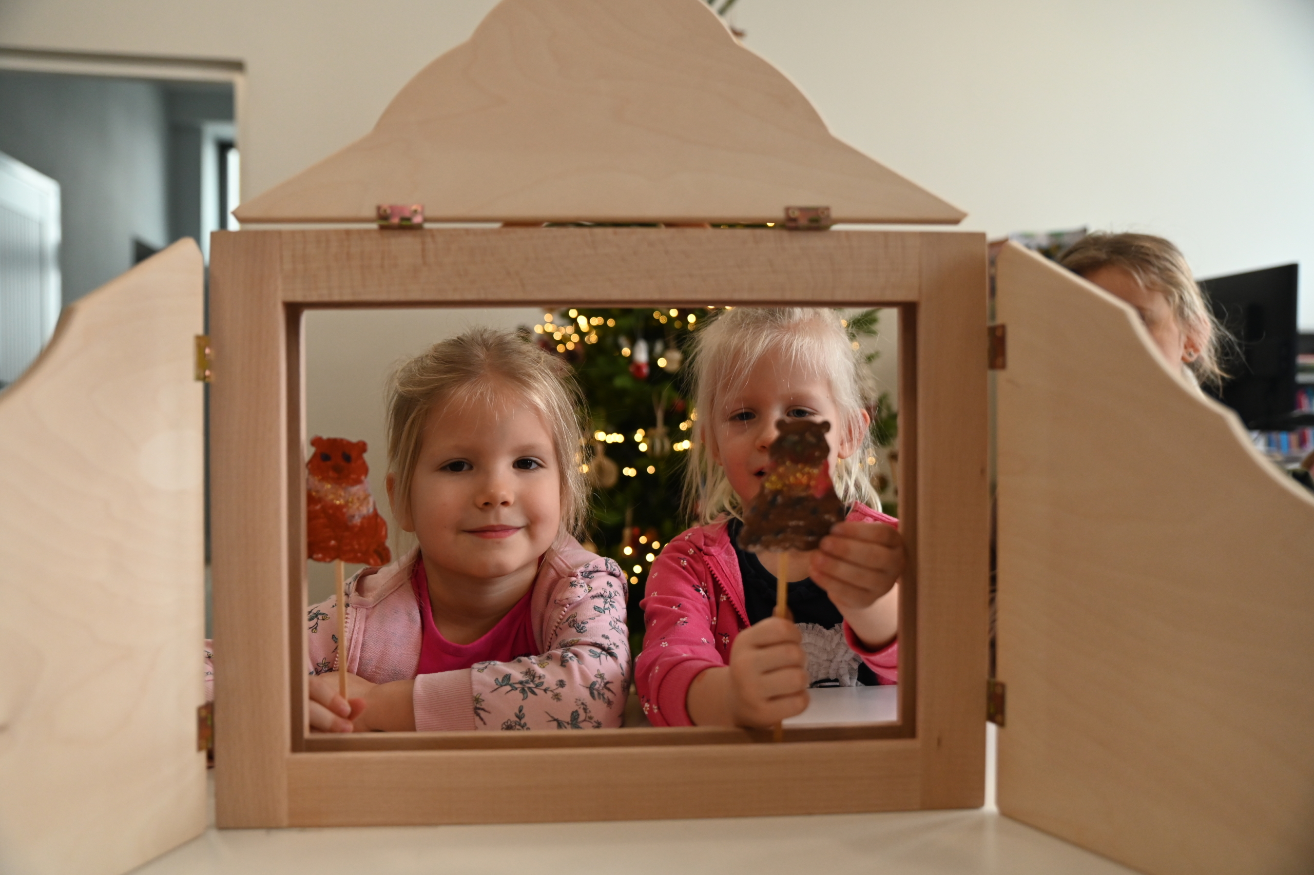 Na zakończenie dzieci wykonały przepiękne portrety misiów, zagrały w teatrze kamishibai, a na koniec — wspólnymi siłami — zbudowaliśmy najwyższą wieżę w całej bibliotece!