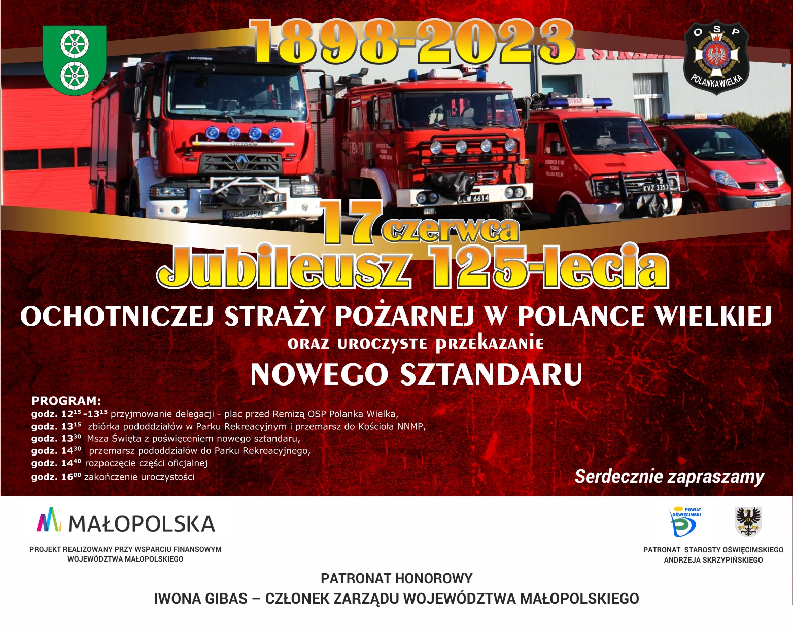 Zapraszamy na obchody 125-lecia Ochotniczej Straży Pożarnej w Polance Wielkiej View Larger Image 9 czerwca 2023|Aktualności| Podobne wpisy Turniej deblowy tenisa ziemnego o Puchar Doliny Karpia 17 kwietnia 2026 Konkurs fotograficzny “WIOSNA W DOLINIE KARPIA” 17 kwietnia 2026 XIII Powiatowy Przegląd Orkiestr Dętych o Puchar Wójta Gminy Polanka Wielka 13 kwietnia 2026 Zgłoś swoją atrakcję do udziału w XV Targach Turystycznych Doliny Karpia – 28 czerwca 2026 r. 9 kwietnia 2026 Nie pompujesz – Nie Jedziesz!!! Ruszają zapisy na sezon 2026! 2 kwietnia 2026 Ogłoszenia o naborze wniosków z Europejskiego Funduszu Rozwoju Regionalnego 25 marca 2026